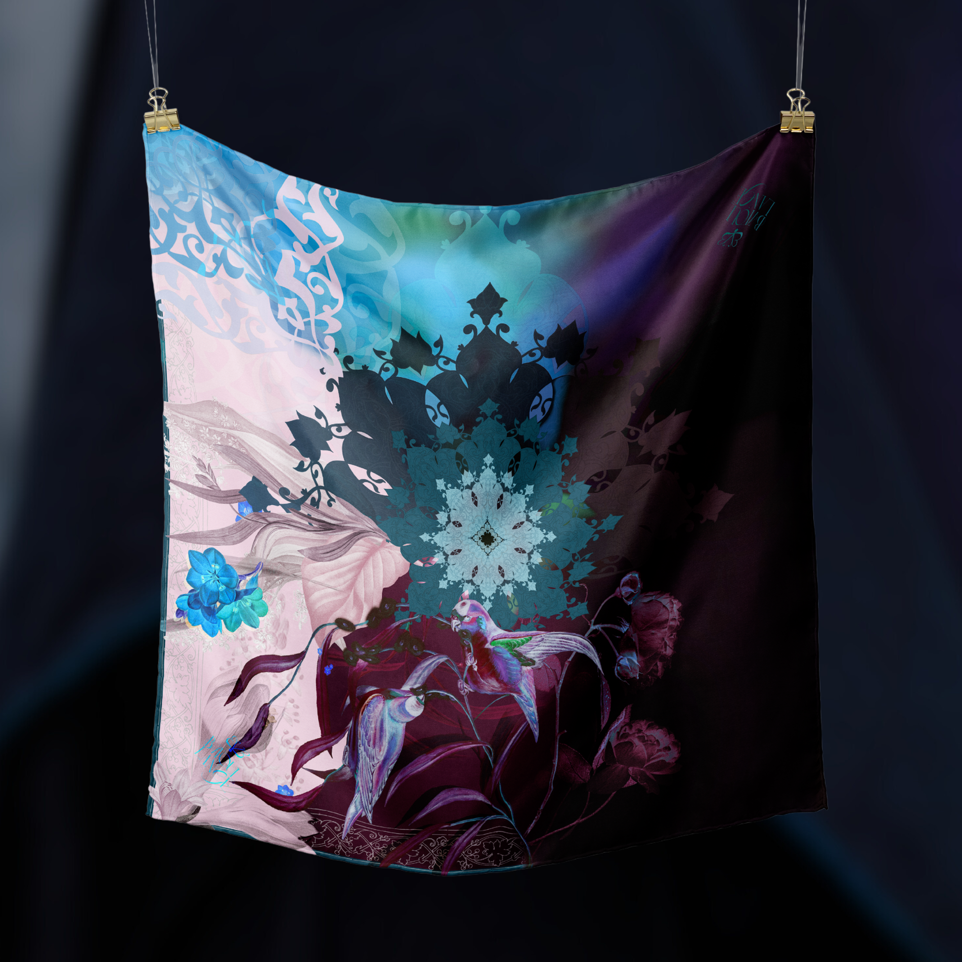Eden in OPAL is a masterpiece of timeless black with chic cool tones. Made with the finest silk, this scarf captures the essence of nature in its every fold. It features four different faces, for endless styling possibilities.